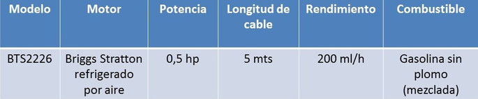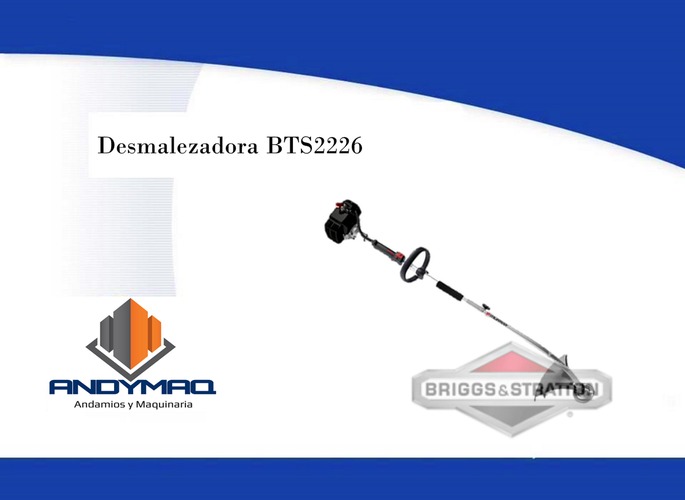 Le desmalezadora BTS 2226 Briggs Stratton cuenta con un motor a gasolina de 2 tiempos enfriado por aire, tanque de combustible de 400 ml y un cabezal de carrete que puede contener hasta 5 mts de cable para corte.